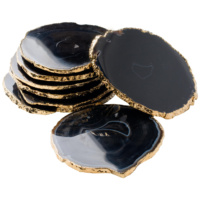 2026年人気ベストセラー売れ筋ナチュラルブルーブラックアゲートスライスホルダーコースターゴールドトリム付きドリンクカップホルダーギフトセット